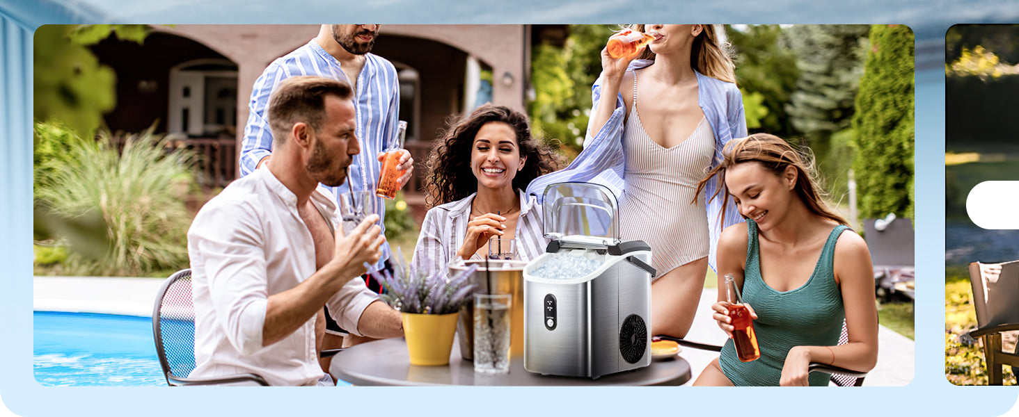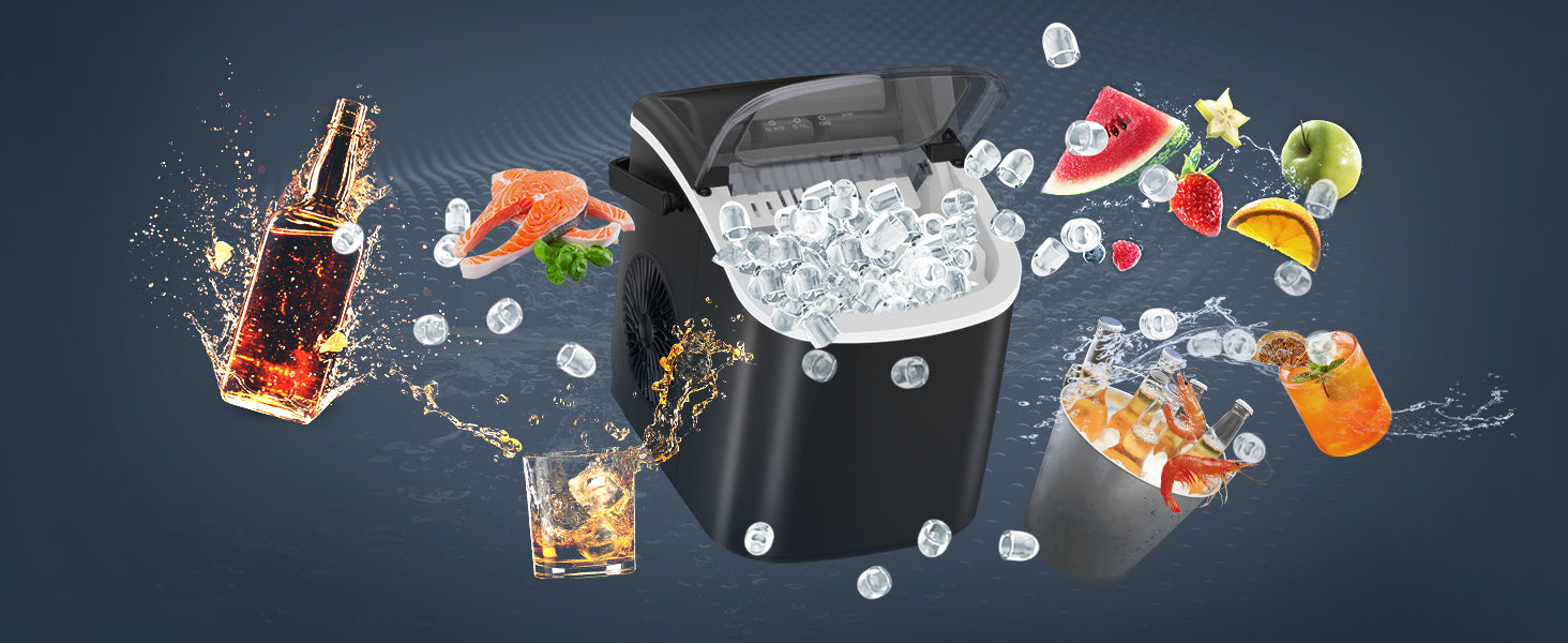 The top of the ice maker has a transparent window, so you can see the ice making process directly through it without opening the lid. Our countertop indicator reminds you to remove the ice when the ice maker basket is full, and notifies you when the ice maker is low on water.