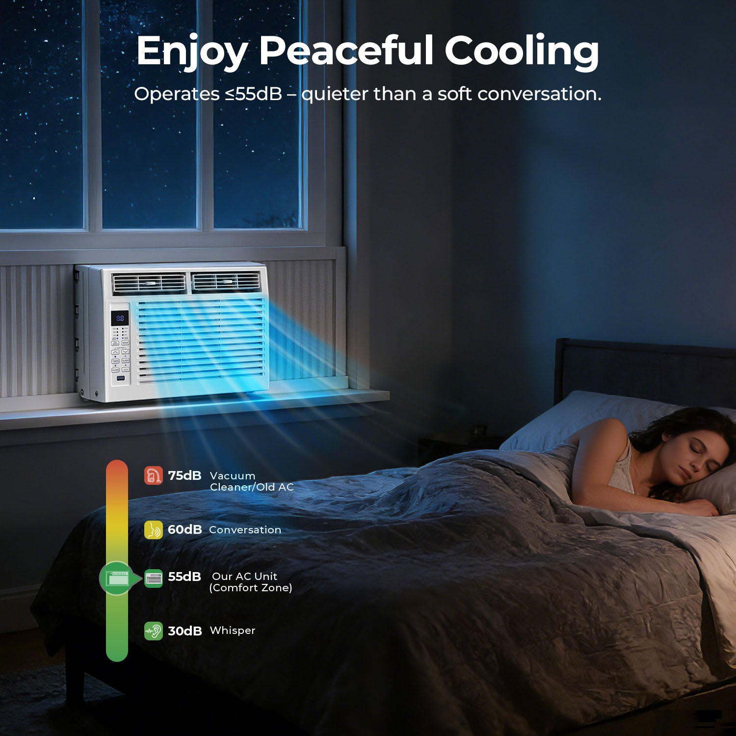 Low-Noise Operation: This 6,000 btu window ac unit with remote operates at just 50 dBA, providing quiet cooling. Allowing the fan to cool your space at a gentle volume without disturbing your surrounding environment. Keep the cool air flowing with minimal disruption; ideal for nighttime use in bedrooms.