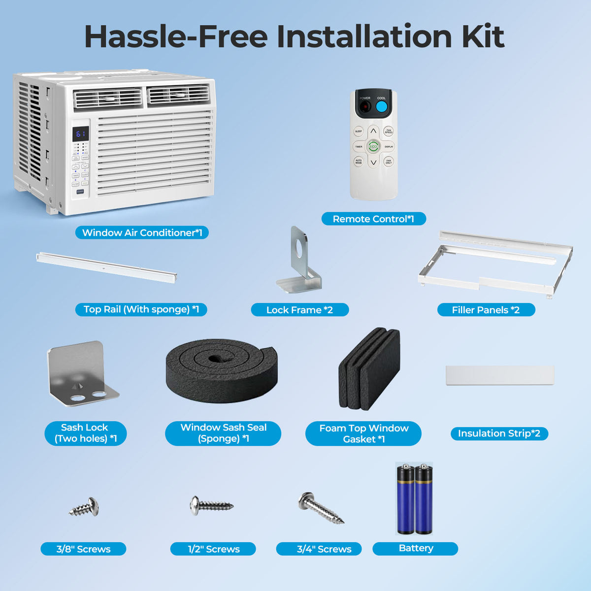 - Quick & Easy Installation: Install easily in your home or apartment's existing window frame. Included side panels and other installation parts save you a lot of assembly time. A detailed instruction manual makes assembly easily done in a short period (please confirm window size before making purchase).