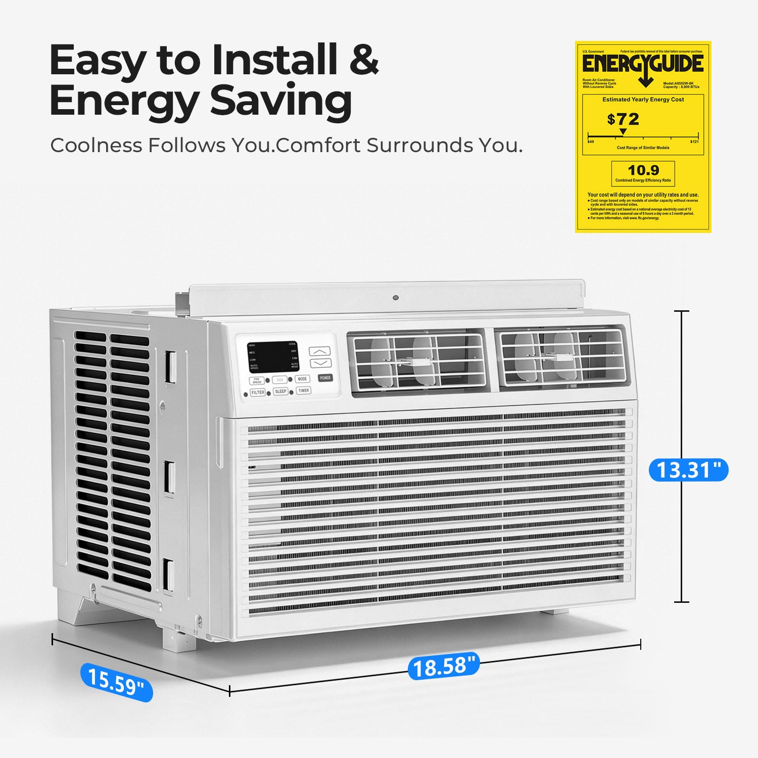 - Energy-Efficient & Cost-Saving: The window air conditioner boasts a high CEER of 10.9, consuming less energy while delivering excellent cooling performance. Save on your electricity bills without sacrificing comfort, making it an eco-friendly and wallet-friendly choice.