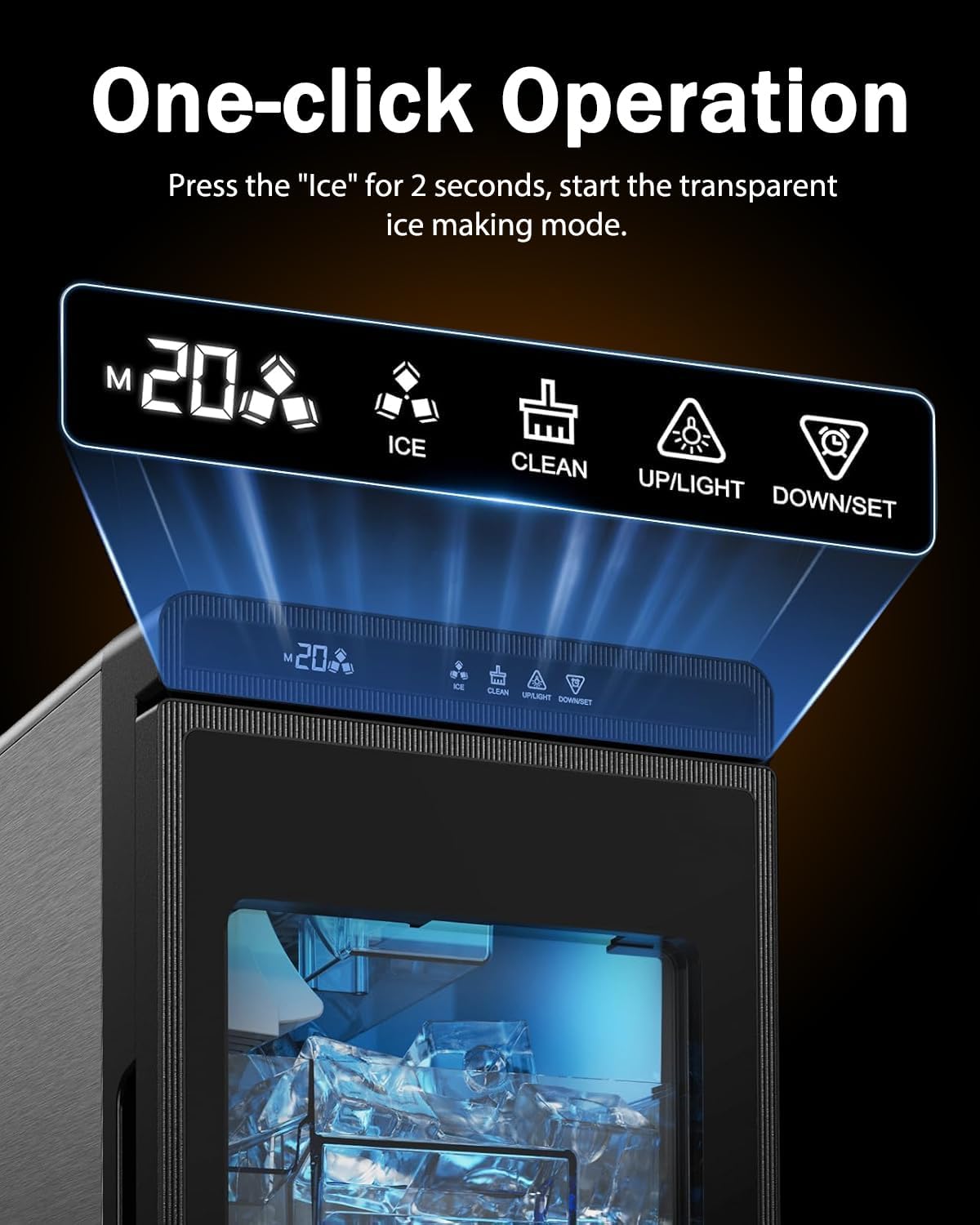 - 【24H Timer & Quiet Operation】With the 24-hour timer, you can freely schedule the ice making time as you want. The clear ice maker operates at only 43dB. It won't disrupt your sleep, work, or other daily activities