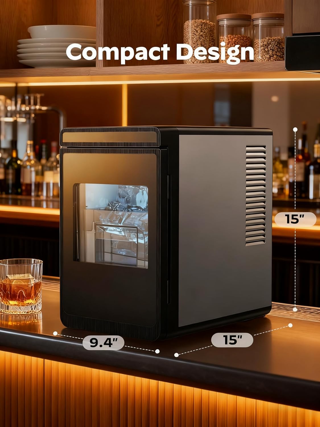 1.6" Crystal Clear Ice Maker Countertop-Produces 9 Clear Cubic Ice per Hour