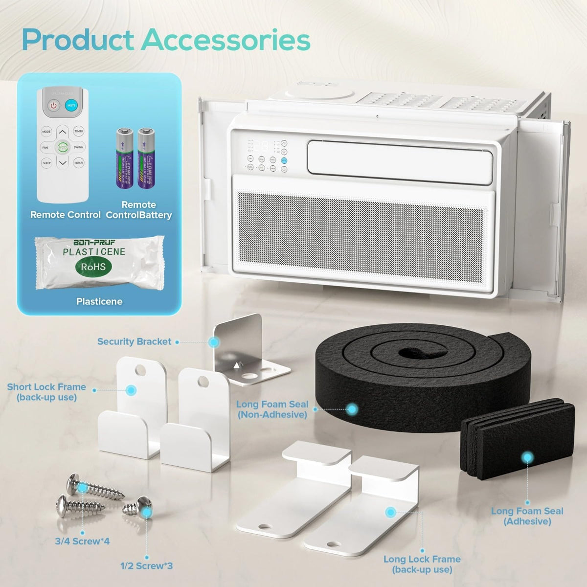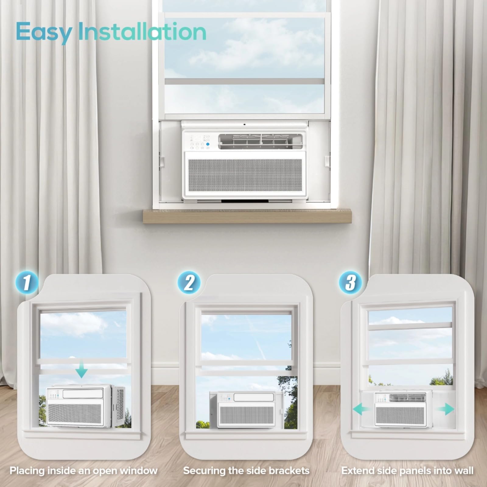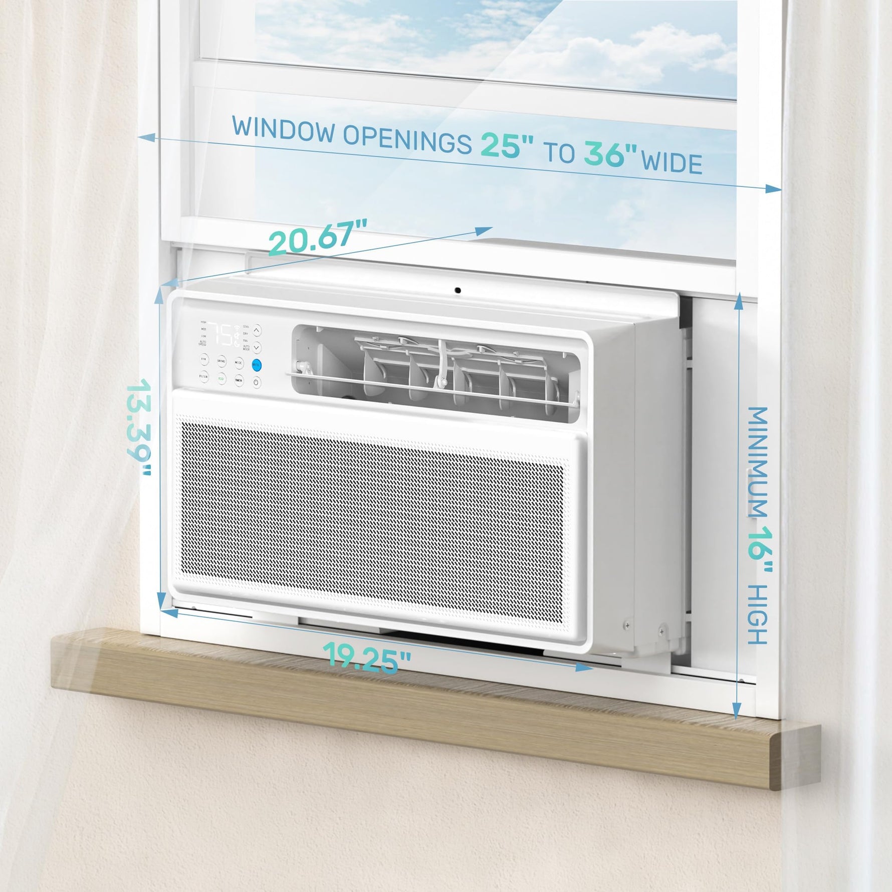 - Easy Installation: The smart inverter window ac features a built-in pre-assembled frame, ensuring a significantly easier and faster setup compared to traditional ac. Installation is a breeze with all necessary accessories included. Then you are all done and ready to enjoy. With product dimensions of 20.67inch x 19.25inch x 13.39inch, the window air conditioner comes with a full set of mounting accessories. Window Size Requirement: 25-36 inch width, 16 inch opening height.