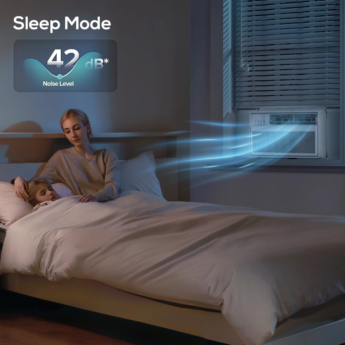 Ultra Silent: Smart inverter window air conditioner. Adopting innovative sound-reducing inverter technology warrants ultra-low noise and vibration. This air conditioner window units operate at only 42dB in sleep mode.