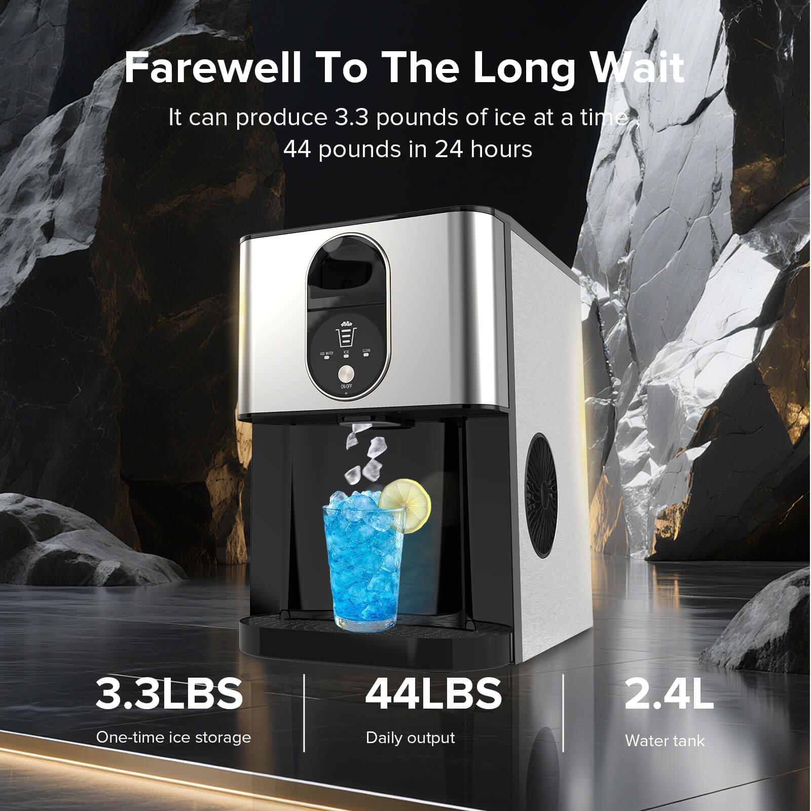 - FAST ICE MAKING: Fill 2.4L of water into the water tank, maximum ice capacity can reach 44lbs in 24 hours. It won't make you feel anxious because of waiting, with fast ice-making in just 15 minutes, let you and your family have ice cubes all day long.