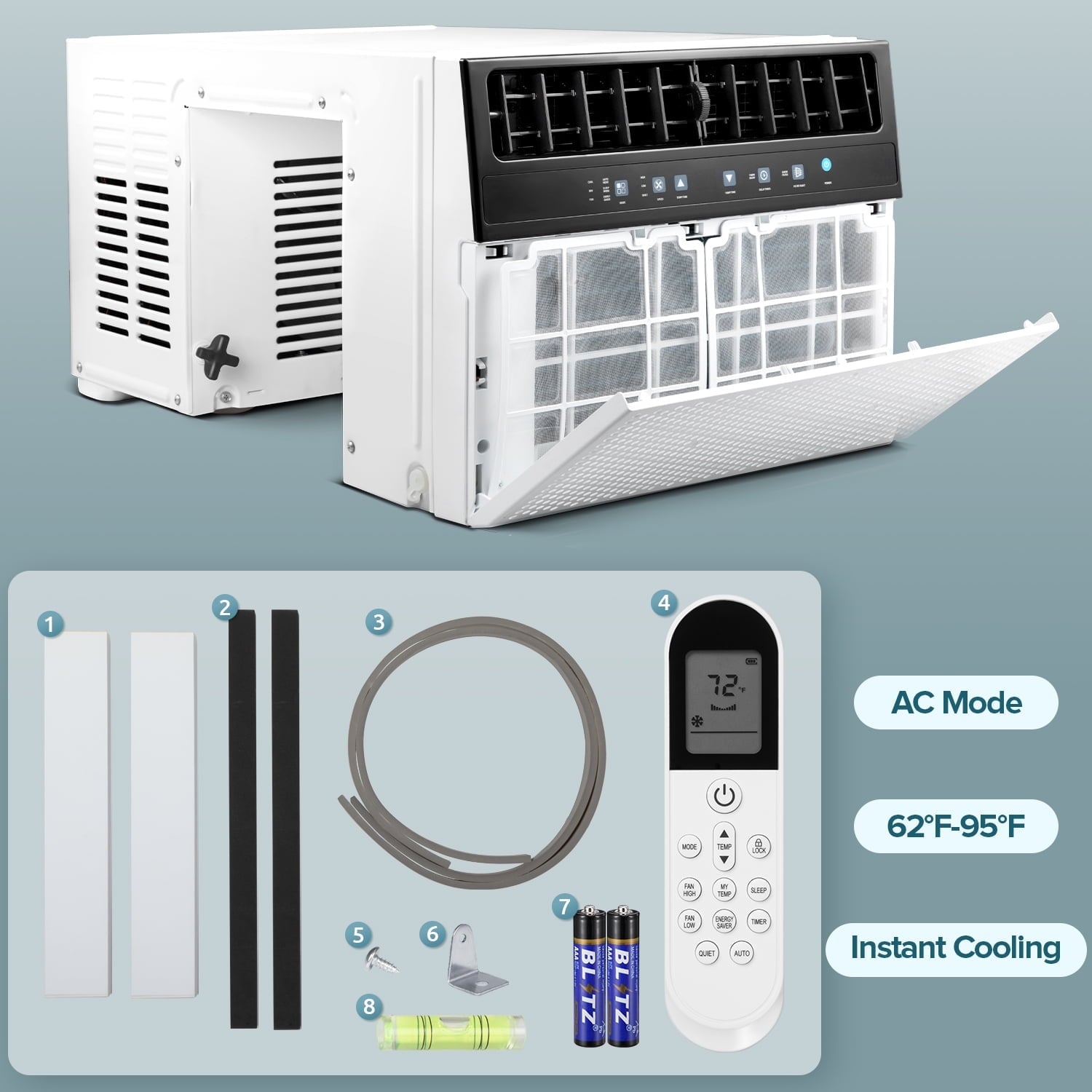 6-in-1 Operation Modes – Cooling, Dehumidifying, Fan, Auto, Sleep, and Energy-Saving modes to meet all your comfort needs. Powerful Cooling Performance – 8,100 BTU/hr output with ASHRAE 10,000 BTU/h rating delivers fast and efficient cooling. Energy Efficient Design – SACC 6,300 BTU/h ensures strong performance with lower energy consumption. 3 Adjustable Fan Speeds – Customize airflow to your preference for maximum comfort. Quiet & Comfortable – Sleep and Eco modes provide a peaceful environment for restful nights.