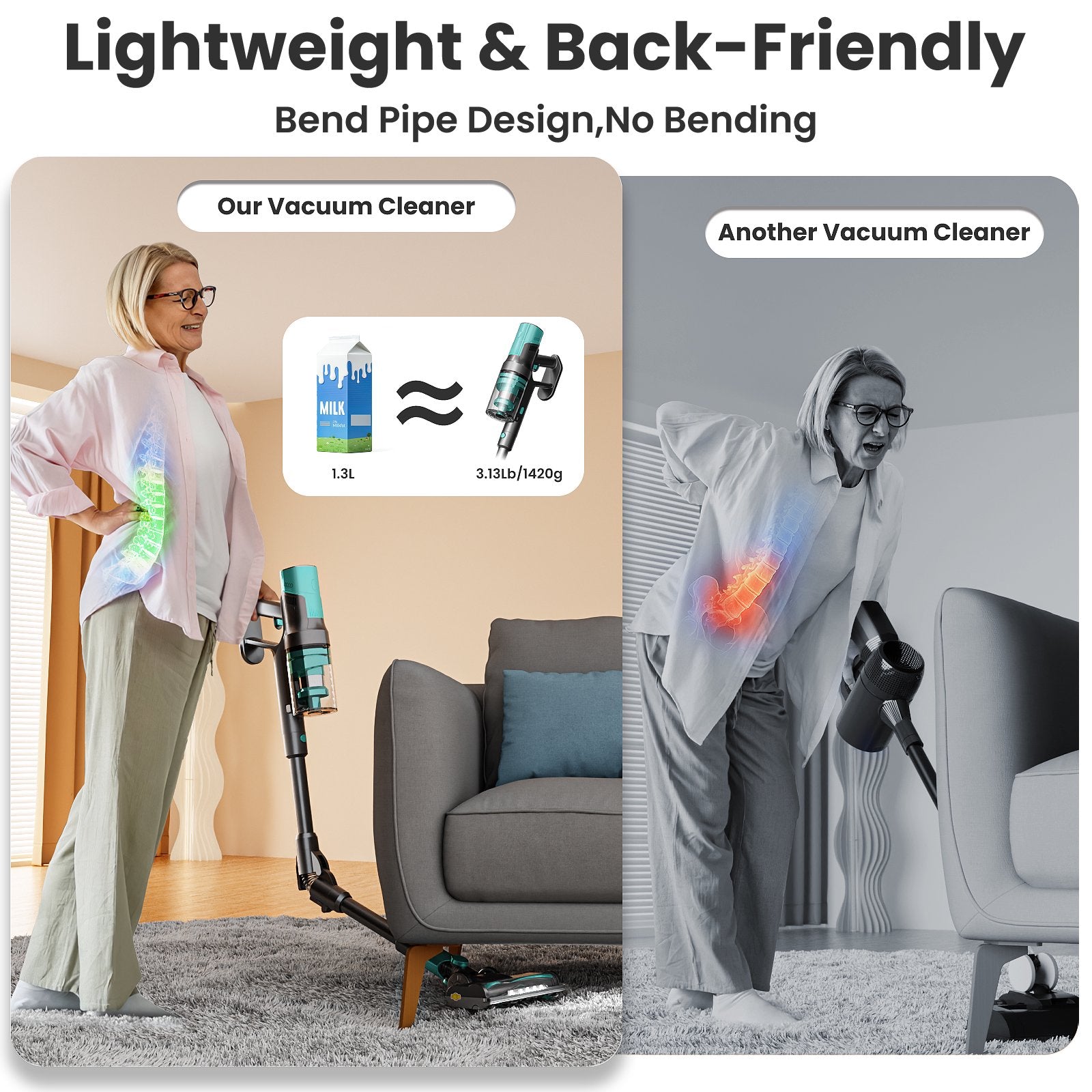 - The innovative bendable tube and lightweight main body allow easy access under low furniture without stooping. Perfect for users with mobility or back concerns.